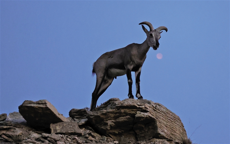甘德尔山主峰海拔约1805米,相对高差513米,这里常年生活着一群国家二级重点保护野生动物——岩羊。岩羊主要生活在高山裸岩地带,可在悬崖峭壁上攀爬跳跃,被称为“岩壁上的精灵”。岩羊是生态环境的“晴雨表”,随着当地生态保护力度加大,甘德尔山上的岩羊经常从山顶来到山脚下的草坡吃草、喝水,丝毫不害怕来往的车辆和行人。近年来,因当地禁猎、禁牧政策的实施,加之2016年起当地实施甘德尔山生态综合治理,使得这里的岩羊数量由七八年前的10多只,增长到目前的70多只。(据新华社报道)