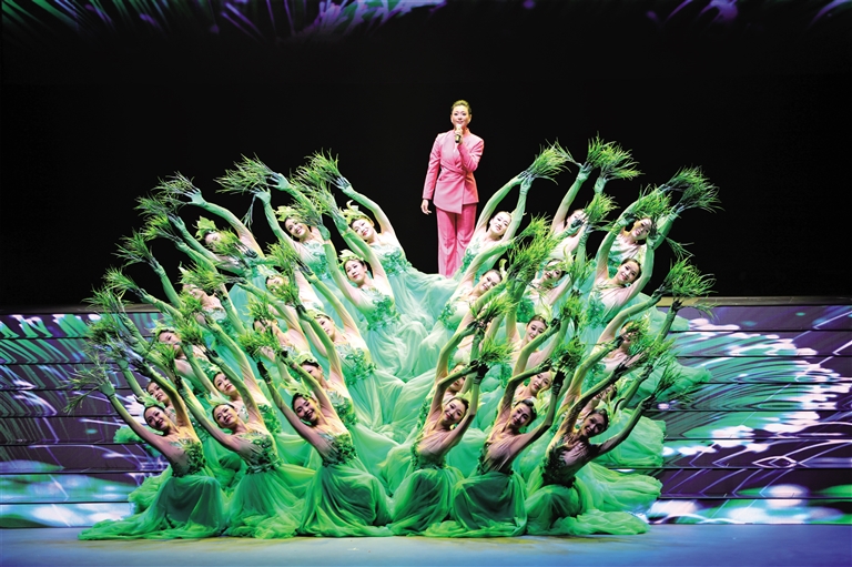 演出伊始,内蒙古老中青三代各民族艺术家身穿盛装走上舞台。82岁的内蒙古第一代乌兰牧骑歌唱家金花给大家讲述了第一代乌兰牧骑队员为人民放歌的感人故事。紧接着,激昂的《歌唱祖国》旋律响起,演员们和现场观众齐声歌唱,拉开了本次演出的帷幕。