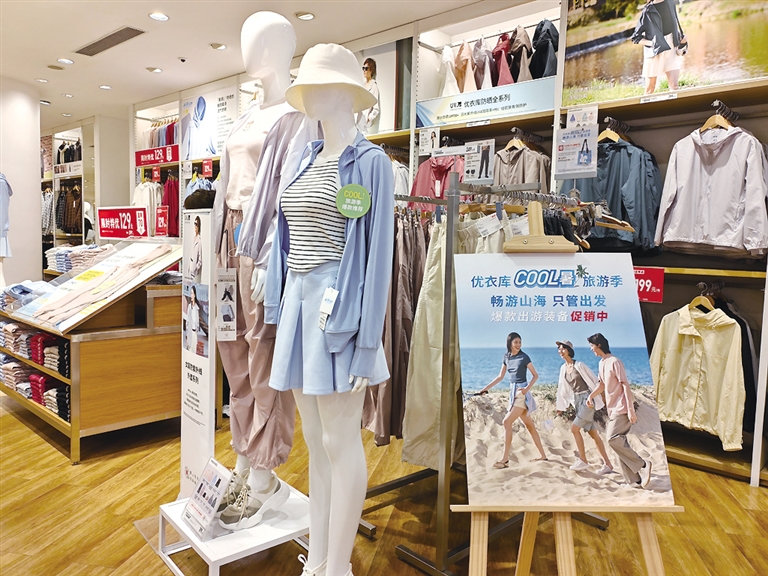 7月24~25日,记者来到呼和浩特市维多利时代城、凯德广场、万达广场等多家商场,发现不少服饰店将防晒衣、冷感衣、速干衣摆在显眼位置。而在一些生活和文创用品店,迷你风扇、防晒霜、清凉喷雾、冰凉贴、挂脖降温冰凉圈等用品琳琅满目,迷你风扇因造型小巧可爱,能随身携带,吸引众多顾客选购。