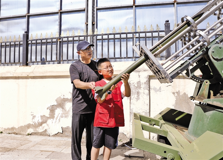 “小朋友们要记住,是人工增雨,不是人工降雨,而且人工增雨也不是想增就能增的,要有一定的水汽条件才行……”气象老师讲解着人工增雨的相关知识,并从列队、口令、检查装置、调方位角和仰角、炮弹出库、上弹、设置警戒线、申请空域、发射等环节进行情景还原,这让小记者们大开眼界,并亲自体验了安装炮弹。