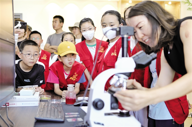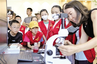 在花粉监测室,小记者们通过工作人员的演示,了解花粉类型和传播途径,认识容易引起鼻炎过敏的花粉形态,并使用显微镜进行观察。“我就是花粉过敏鼻炎患者,这个环节让我知道了‘罪魁祸首’的样子……”来自巨华小学四年级一班的张歆雨直呼,气象之旅让她收获满满,太喜欢这样有意义的活动了。
