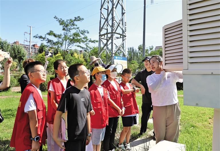 活动在有趣的互动游戏中展开。小记者们先来到赛罕区国家基本气象站参观地面观测场设备,翻斗式雨量传感器、冻土自动观测仪、风向风速仪等各种气象监测设备,让大家对气象数据来源有了初步认识。“原来这是天气预报的第一步啊!”来自胜利街小学三年级五班的于小悦说。