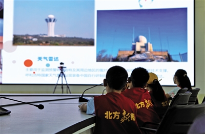 了解了气象数据的采集过程,那么,这些数据又是怎样变成天气预报的呢?在气象老师的带领下,小记者们又陆续参观了天气预报演播室、气象监测预报平台、预警信息发布平台、灾害预警应急指挥中心,终于找到了答案。