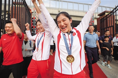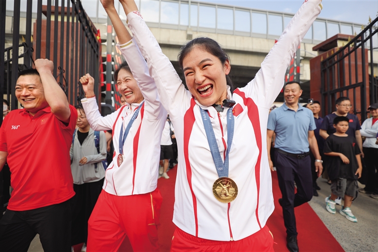 16时30分,李倩、杨柳乘坐的高铁停靠在呼和浩特火车东站。身着统一服饰的内蒙古各项目队运动员代表将热烈的掌声和欢呼声送给两位健儿,李倩、杨柳与亲友拥抱在一起,家乡的温暖和爱意让她们激动不已。随后,二人随车前往内蒙古自治区重竞技运动中心。