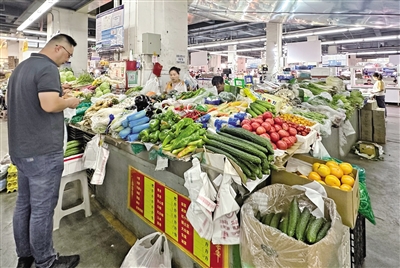 采访中,许多市民都感觉到近期蔬菜的价格有所上涨,尤其是豆角、黄瓜等涨得较多。万惠农贸市场主任张洪瑄告诉记者说,该市场的蔬菜货源渠道畅通,供应充足,不过,近期蔬菜主产地受降雨影响产量下降,导致蔬菜价格出现上涨态势。