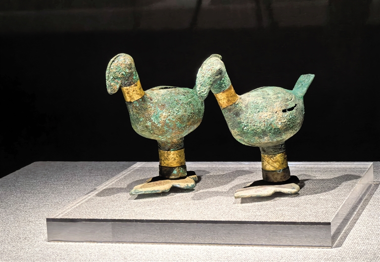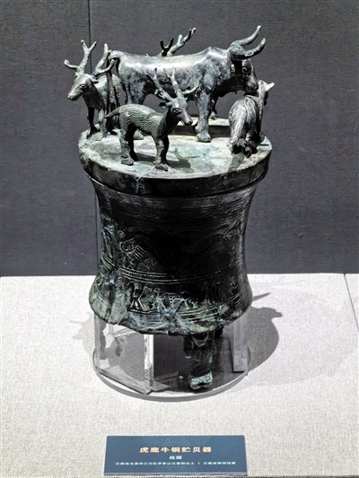 本次展览在结构上加入了与滇青铜文化同时期的中国北方青铜文化的内容。可以看出,区域特点鲜明和时代特征突出的两种文化却有着密切的联系,动物形铜饰件、管銎铜啄、铜剑、权杖等器物上出现了极强的相似性。滇王之印、铺首衔环、博山炉等具有中原文化因素器物的出现,昭示着中原王朝设郡县、实行屯田戍守、移民实边等一系列措施,使各民族在政治、经济、军事、文化等方面有了广泛而深刻的交流,极大地促进了各民族的融合和多元一体格局的形成。