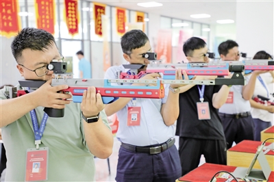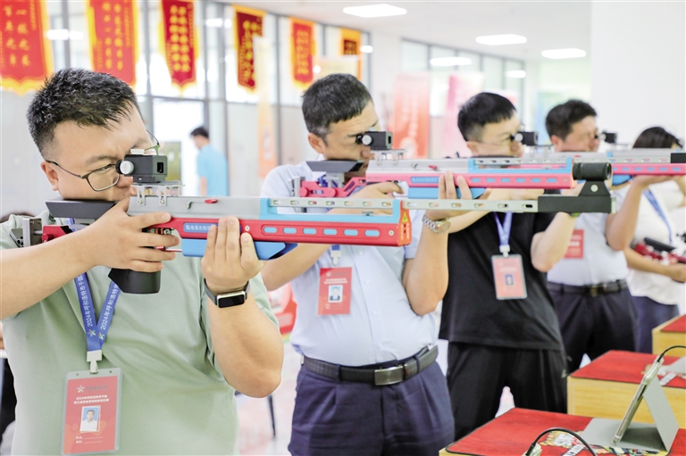 8月22日,选手在参加气步枪项目的比赛。当日,由呼和浩特市人民政府主办,呼和浩特市体育局承办的2024年呼和浩特市干部职工运动会激光枪射击比赛开赛。据了解,该运动会是近年来呼和浩特范围内参与人数最多,设项最丰富,涉及单位最广的综合性干部职工大型体育赛事。赛事自8月起持续到10月下旬,共设田径、拔河、工间操、乒乓球、羽毛球、网球、足球、篮球、气排球、保龄球、激光枪射击、旱地冰壶等12个大项,78个小项。首个项目激光枪射击比赛共有700余人参加争夺。摄影/草原云·北方新报首席记者 牛天甲