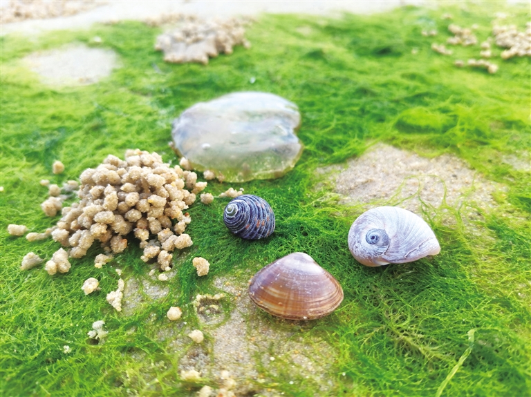 返程的路上,翻看手机里拍的旅游照片,回想这四次赶海,抛开生活中的一地鸡毛,虽然短暂,但是感受到了彻底的放松和宁静。这份宁静,来自大自然,来自那轻柔的海草、绵软的水母、蠕动的海螺和灵巧的螃蟹……远离尘嚣,回归本真,这是最真最纯最高级也最质朴的宁静。毕竟,在大自然的怀抱里,我们都是孩子,不是吗?