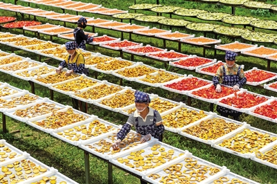 8月26日,江西省宜春市铜鼓县温泉镇禄田村村民在院落“晒秋”。