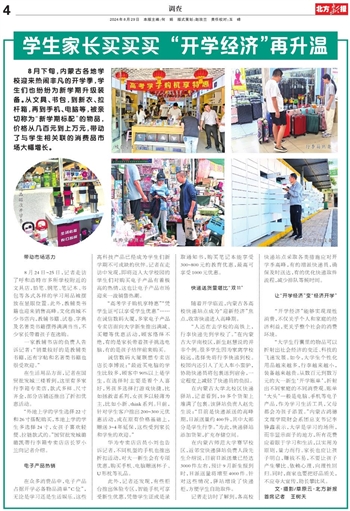 8月24日~25日,记者走访了呼和浩特市多所学校附近的文具店,铅笔、钢笔、笔记本、书包等各式各样的学习用品被摆放在显眼位置。此外,教辅类书籍也迎来销售高峰。文化商城不少书店内,教辅书籍、试卷、字典及名著类书籍摆得满满当当,不少家长带着孩子在选购。