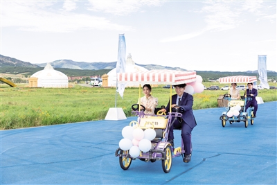 在“浪漫草原 见证爱情”环节,新人们骑着双人自行车入场,在草原上许下爱的誓言,分享他们的爱情故事,并将幸福传递给在场的每一位单身青年。“草原风情 浪漫邂逅”环节,参与者以角色扮演的方式,通过沉浸式的体验,更深入地了解彼此,增进感情。“心动告白 收获幸福”环节,青年们纷纷勇敢地登上舞台展示自我、交流互动,最终有10对青年男女成功牵手,现场处处可见青年男女相互添加联系方式并愉快交流的温馨场景。