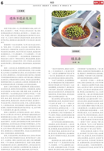 “清汤半碗润吟喉,满腹凉生暑气收。一片热肠都洗尽,小窗高卧看牵牛。” 这是清人张鹤龄吟咏“绿豆汤”的一首小诗。每每读到此节,便不由得忆起儿时母亲给我们做绿豆汤的往事来。