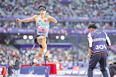 而就在几天前,邸东东在法兰西体育场的奋力一跃也感动了许多人。在男子跳远T11级比赛中,随着教练员王琳的一声声口令“来、来、来……”,邸东东开始助跑、加速,就在口令停止的刹那,邸东东高高跃起,在空中划出一道美丽的弧线。6米85的成绩一举打破尘封10年的世界纪录,他以巨大优势将金牌收入囊中。