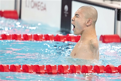 失去双臂的“涡轮增压小马达”郭金城,游50米几乎全程不换气,并用头全力撞向终点池壁,让网友“隔着屏幕感受到了痛”。“我也想代表我们的残疾人朋友为国争光,所以就想尽力发挥,争取多拿几块金牌。”这名00后小伙不愿多谈自己克服的疼痛,总是一脸笑容。