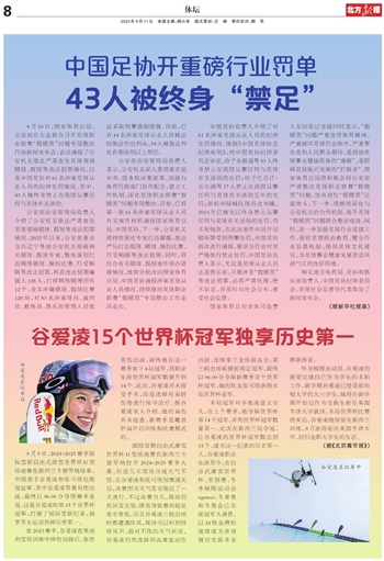 在2023赛季,谷爱凌在奥地利雪场训练中摔伤肩膀后,依然带伤出战。最终她在这一赛季拿下4站冠军,将职业生涯世界杯冠军数提升到14个。此后,谷爱凌并未接受手术,而是选择对肩膀伤势进行保守治疗。据谷爱凌家人介绍,她的肩伤并未痊愈,新赛季是戴着护肩开启训练和比赛模式的。