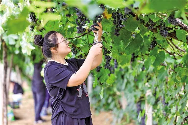 9月,呼和浩特市托克托县黄河沿岸万亩葡萄陆续进入采收期,中秋节期间,游客们来体验采摘快乐。“葡萄真甜,采摘的过程也很有趣。既能品尝到美味水果,又能亲近大自然,太棒了!” 一位游客说。