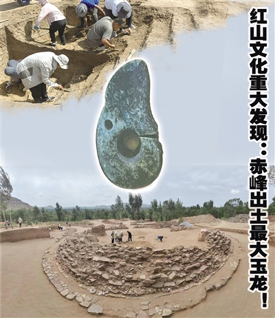9月22日,中华文明的璀璨星辰——“红山文化”命名70周年研讨会在赤峰市召开。内蒙古自治区文物考古研究院研究馆员党郁在研讨会上发布:在赤峰市敖汉旗下洼镇八旗村北1.5公里处新发现的敖汉旗元宝山积石冢遗址,出土一件长15.8厘米、宽9.5厘米、厚3厘米的玉龙,是红山文化百年考古发现的体量最大的玉龙。