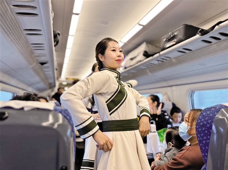 9月28日上午,开往北京的动车上,呼和浩特乌兰牧骑队员们奏响马头琴,唱响歌曲《赞歌》《站在草原望北京》等,引来旅客围观拍照,不少人跟着一起哼唱起来……据介绍,呼和浩特市各支乌兰牧骑已分别在龙潭中湖公园、北京市东城区图书馆剧场进行综合文艺晚会演出并在中央民族大学开展主题快闪活动。