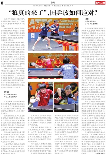 2009年年初,中国乒协曾推出“养狼计划”。过去十多年,外协会并未对国乒构成真正的威胁。但从上个奥运周期开始,以日本为代表的外协会更新换代、新人崛起,直至本届亚锦赛,他们在阿斯塔纳上演了一出现实版的“狼来了”。在00后唱主角的当下,国乒队在后备人才培养方面的缺失一览无遗。