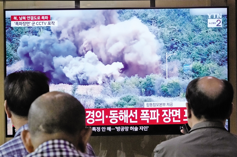 韩国联合参谋本部当天通过短信将声明发给媒体,声明说朝鲜于当天中午12时左右炸毁了京义线、东海线两条公路位于韩朝军事分界线以北的部分路段,并正在投入重型装备进行后续工作。韩军未受损失,正在密切关注朝方活动,在韩美合作下加强监视和警戒,以维持应对态势。声明未透露韩方应对射击的具体细节。