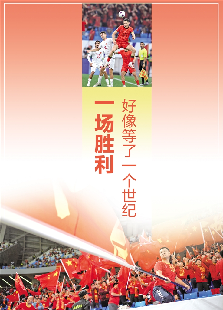 国足两球领先时,现场的国足球迷俨然成了世界上最幸福的人。人浪涌起,看台上的那抹“中国红”格外艳丽。
