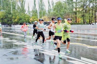 当天,比赛现场阴雨绵绵,但气氛依旧火热,广大跑友不畏雨水,超越自我,在奔跑中生动诠释了马拉松精神。披着透明雨衣奔跑的跑者和亚洲最大的城中草原秋色组合成了一个难忘的画面。
