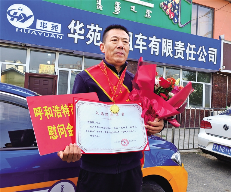 记者了解到,方海福平时就是一位热心肠的出租车司机,经常参加义务送考、义务植树、运力保障等公益活动。驻企督导员、呼和浩特市交通局交通运输综合行政执法支队十一大队副大队长丹麟说,他们会定期对出租车司机,尤其是新入职的的哥的姐们,进行从业培训教育,要求每一位出租车司机从我做起,践行诚实守信,以小善传递大爱,擦亮呼和浩特市“城市流动的名片”,传递社会正能量。