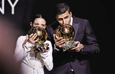 由于遭遇了右膝十字韧带撕裂的重伤,罗德里拄拐来到颁奖仪式现场,并发表获奖感言。“首先我要感谢世界上对我最重要的人,就是我的女朋友劳拉,今天是我们的纪念日。其次,曼城是世界上最好的足球俱乐部。这个奖项,是西班牙足球的胜利,绝非属于我一人。”罗德里还表示,亚马尔将很快赢得金球奖,他对此深信不疑。