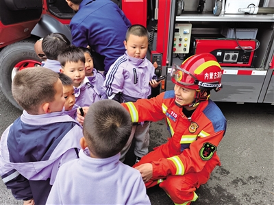 在大召消防救援站,一群可爱的小朋友在老师和家长的带领下,玩起了彩泥和模型拼装游戏。一个个用彩泥塑造的消防员形象跃然纸上,灭火器、水带、消火栓……孩子们用他们灵巧的小手捏出一个个心中的消防形象,他们还把精美清新的“小花束”送给现场的“蓝朋友”。在家长和老师的帮助下,两辆消防车模型也拼装好了,孩子们拉直、收起云梯,玩得不亦乐乎。
