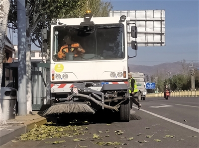 记者了解到,针对今年落叶周期较长、量大的特点,环卫部门采取了人机结合作业方式进行快速清理。环卫部门加强机械化巡回清扫力度,对落叶较多的重点路段增加机械化清扫频次,进一步提高落叶清扫工作效率,同时合理调配人员进行清扫收集清运。在树木比较密集、落叶较多的地段,延长作业时间,针对主次干道、人行便道、树坑绿化带等安排专人每天巡回保洁,进一步缩短落叶、垃圾滞留时间,同时每天安排压缩车辆跟进收集清运,增加循环收集频次,确保落叶得到及时有效清理。