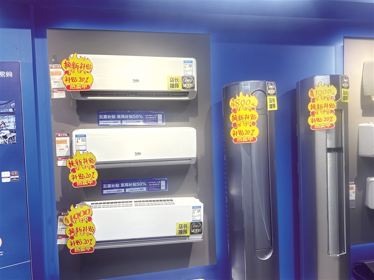 中山西路苏宁易购图书大厦店店长刘艳红说,国补政策出台后,到店咨询家电以旧换新的消费者络绎不绝,日均接待量相比之前增长近3倍,销售额也比去年同期提升50%。她说:“这是近20年来补贴力度最大的一次,国补、厂家补、商家补,三重补贴让更多品牌家电迎来热销,其中空调、冰箱、洗衣机、电视机等产品以旧换新销售额同比出现大幅增长。”