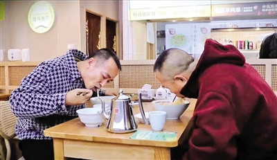 “套餐里不仅有面,还有鸡蛋及小菜,吃得饱又吃得好。”19日晚,忙碌了一天的出租车司机赵师傅吃着热气腾腾的面,心里暖暖的。他说,“到了晚上,许多饭店都不营业,常常吃不上热乎饭,现在能免费吃上可口餐食,还能在店里休息一会,挺好。”