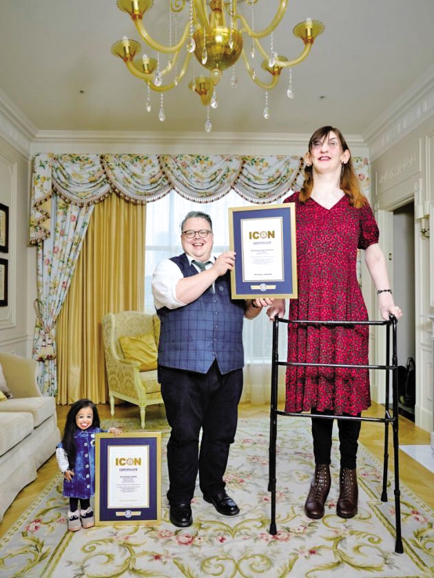 据吉尼斯世界纪录网站报道,身高2.15米的鲁梅伊莎·盖尔吉和身高62.8厘米的乔蒂·安吉在位于伦敦市中心的萨沃伊饭店见面,共享传统英式茶点。