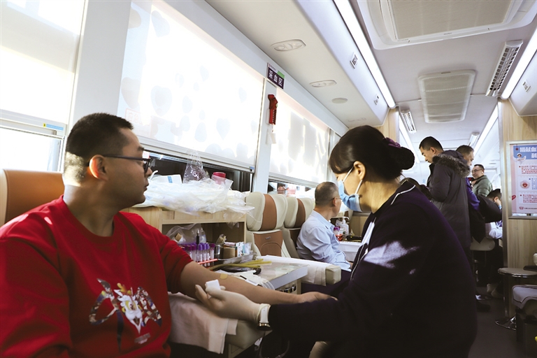 “今天是我第五次参加无偿献血活动,截至目前我已经献血1600毫升。我是RH阴性血,俗称熊猫血。几年前我首次义务献血时才知道自己的特殊血型,既惊讶又忐忑。后来我的兄弟姐妹中又有3个被检出是RH阴性血。我家目前有4个‘熊猫’。”今年51岁的保洁员郭秀珍说,参加无偿献血让她知道了自己是稀有血型,了解到稀有血型的相关知识,提高了健康素养。“我很开心,既帮助了别人,还帮助了自己。”