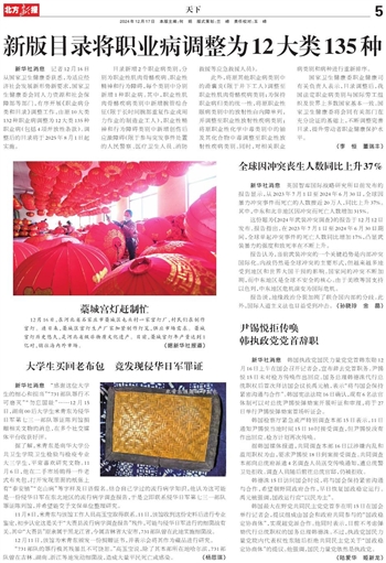 国家卫生健康委职业健康司有关负责人表示,目录调整后,我国法定职业病类别与国际劳工组织及世界上多数国家基本一致。国家卫生健康委将会同有关部门在充分论证的基础上,不断调整完善目录,提升劳动者职业健康保护水平。