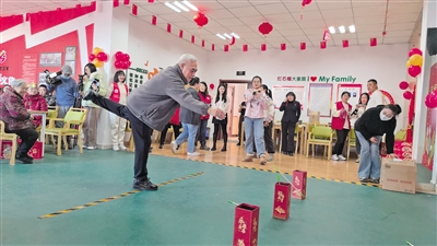 在《祝你生日快乐》的歌声里,寿星们共同吹灭蜡烛许愿。拉拉家常叙叙旧,老人们围坐在一起,分享彼此的故事和回忆,气氛融洽和谐。在套圈圈、夹乒乓球游戏中,老人们积极参与,现场笑声不断。满头华发一脸皱纹,尽管岁月在他们身上留下痕迹,但他们的笑容和舞姿却如春日暖阳般灿烂。