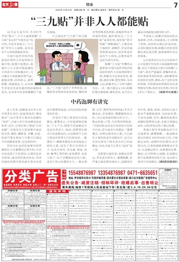 但是对于网上售卖的中药泡脚包,董博表示,中医强调辨证施治,千人千方,网售中药泡脚包不是适合所有人。他说,消费者在购买中药泡脚包时,应该根据个人的主要症状和养生目的来选择。一般情况下,睡眠质量差且容易焦虑心烦的人群,适用于养生安神的方子,包含合欢皮、首乌藤、黄连、肉桂、酸枣仁等药材;容易感冒、免疫力低下、处于亚健康状态的人群,适用于扶正防感的方子,一般由黄芪、白芷、荆芥等药材组成;冬天手脚冰凉、容易痛经、腰膝酸软的女性,可以选择温阳暖宫的方子,一般由桂枝、川芎、乌药等药材组成。“目前医院也有治疗疾病的中医综合疗法,其中就有中药腿浴。”董博建议,有特定需求的人群,可以前往正规医院进行泡脚治疗,也可以在医生指导下购买适合自己的泡脚包,如此才能不让养生“泡汤”泡了汤。