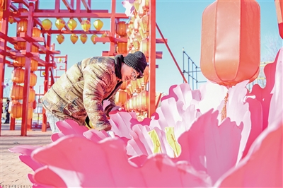 12月25日,在呼和浩特市小草公园内,工作人员正在布置彩灯。据了解,小草公园2025年新年灯会包括欢喜过大年、花样国潮、趣味科技三大主题板块,总游览线路全长850米,共设计37组花灯,目前正在进行安装调试。12月31日,灯会将与灯光秀、烟火秀、互动投影等项目相结合,为游客献上一场视觉与文化的双重盛宴。 摄影/草原云·北方新报首席记者 牛天甲