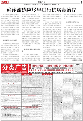 确诊流感应尽早进行抗病毒治疗