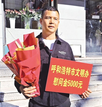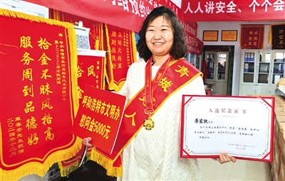 李宏侠是呼和浩特市乐行出租汽车公司一名出租车司机。12月20日,李宏侠在恒大雅苑南门搭载一名乘客前往万正小区北门,乘客下车后不久,她发现后座上有一个红色手提袋,里面装有大量现金。因无法联系到失主,李宏侠立即联系公司说明情况,准备将现金交回公司时接到失主安先生的电话。两人相约在出租汽车公司移交失物。不到两小时找回遗失的现金,安先生心情非常激动,他说,袋子里的9万元现金是10多名工人的工资。为表达对李宏侠的感谢,安先生制作了感谢锦旗送给李宏侠。