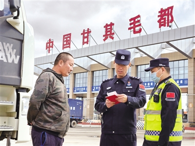 12月25日,巴彦淖尔市乌拉特中旗甘其毛都口岸,早晨寒风凛冽,一辆辆载满煤炭的大货车在民警的指挥下,有序驶入执勤现场。“您好,请下车出示证件、接受检查。”一个标准的停车手势,甘其毛都边检站执勤三队副队长王小龙拦下一辆货车,用蒙古语对驾驶员进行例行询问,核对证件信息。身后,执勤民警爬上驾驶室、钻进车底检查是否有违禁物品,这样的动作,他们每天都要重复一两百次。