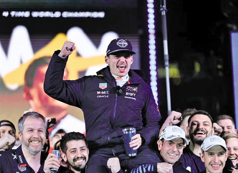 11月24日,2024赛季F1大奖赛结束了拉斯维加斯站的争夺,红牛车队的荷兰车手维斯塔潘第五名完赛,提前两站锁定本赛季年度车手总冠军,这是他连续第四年收获这一桂冠。(据新华社报道)