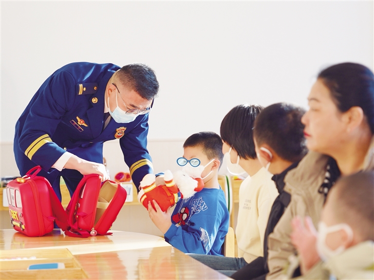活动现场,两辆消防车缓缓驶入福利院,消防员身着整齐的制服,面带亲切的笑容,出现在孩子们面前,鄂尔多斯市消防救援支队副支队长王鹤代表鄂尔多斯消防将精心准备的消防文创小书包、笔袋和可爱的消防小熊作为礼物赠送给孩子们。在福利院里,消防员和孩子们一起开展了欢乐的互动游戏。大家围坐在一起,用彩泥制作消防车模型,孩子们充分发挥想象力,在消防员的指导下,一辆辆色彩鲜艳、形态各异的“彩泥消防车”诞生了。现场充满了欢声笑语,孩子们沉浸在欢乐与温馨的氛围中。消防员还带领孩子们参观了消防车辆和器材,熟悉了基本灭火器材、救援、防护等装备,用通俗易懂的语言、形象生动的肢体动作,耐心细致地讲解各种消防装备的性能、用途以及操作,听得孩子们不时发出惊叹声,并鼓掌向消防员们表示敬意!