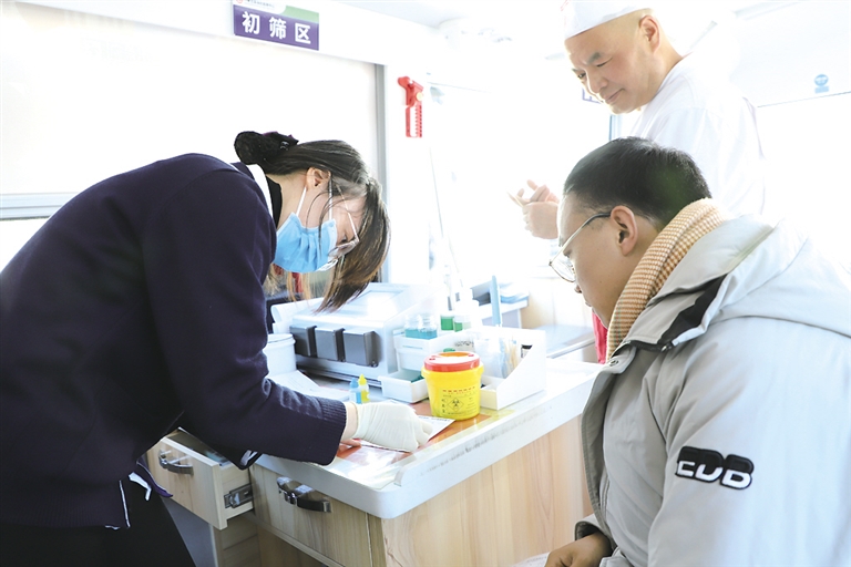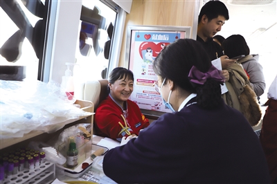 当日,在自治区党政机关办公区、政府办公区北区,工作人员依次填表登记,有序上车献血。车外寒气逼人,车内温暖如春。