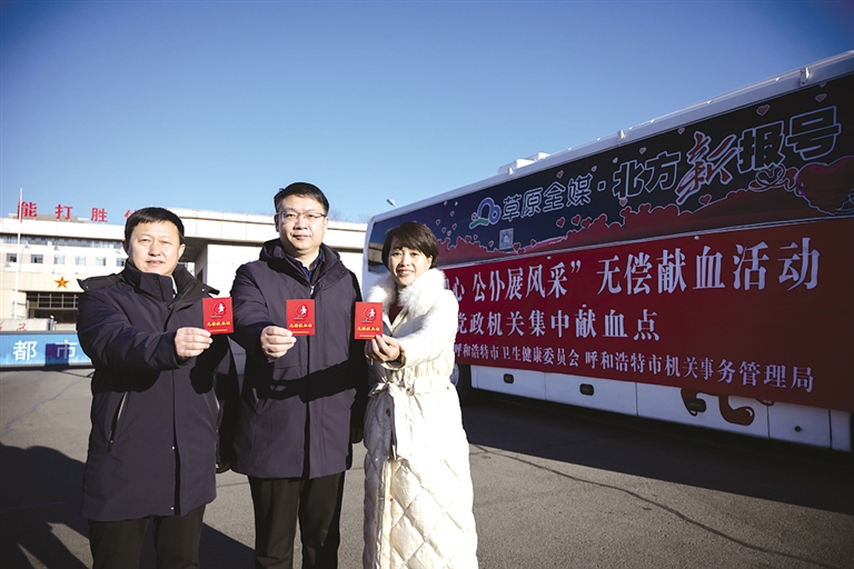 在呼和浩特市人民政府办公楼前的采血车上,气氛同样热烈。
