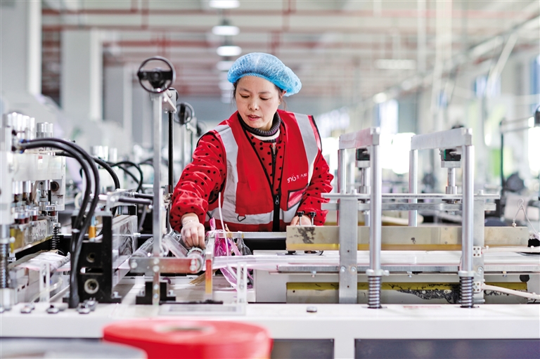 工人在江苏省兴化市林湖乡的生活帮(江苏)家居用品有限公司生产车间作业
