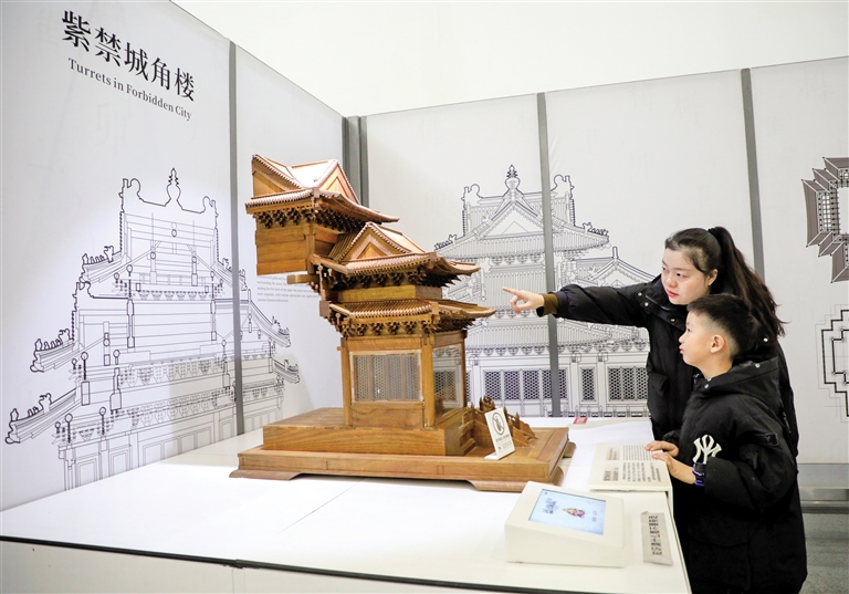 1月8日,家长为孩子讲解角楼搭建原理。由中国科学技术馆、内蒙古自治区科学技术协会主办,“榫卯的魅力”专题展览日前在内蒙古科学技术馆一楼专题展厅展出。该展览分为七千年前的发明、古代建筑的智慧、中式家具的灵魂、形形色色的榫卯、现在榫卯的演变5个主题。展览面积800平方米,展品31件(套)。本次展览旨在扩大科普教育成果,大力促进科普与文化、艺术的深度融合。