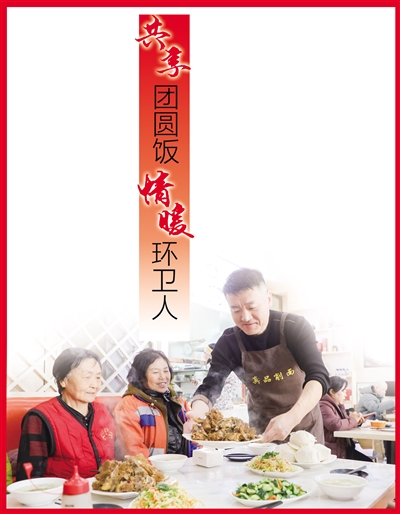 环卫工李大姐对记者说:“我干了这么多年环卫工作,虽然辛苦,但看到城市干净整洁,心里就高兴。今年能和大家一起吃顿团圆饭,很感动,就像在家一样……”