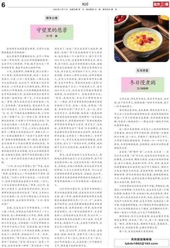 2025年的天幕打开,还有许多缤纷的心愿与祝福去慢慢实现:在医院里当护工的曹大姐,新一年里,她要用更好的护理去安慰遭受疾病折磨的生命;“沙、沙、沙”,如蚕吃桑叶的声音,这是清晨挥动着扫帚在老街清扫的樊大哥,他希望新的一年里,他和守候在老街的人,在一条河流的陪伴中,生活得更舒心;还有我的文友马大哥,在2025年,一家出版社要为他出版第三部小说集。马大哥告诉我,他想沉下心来,去读更多的好书,写自己内心涌流的文字。