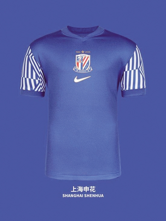上赛季拿下超级杯冠军和联赛亚军的上海申花,也得到了一款“走心”的新战袍。今年恰逢球队问鼎顶级联赛冠军30周年,因而新球衣在袖口特意设计了与1995年款球衣类似的蓝白条纹,象征球队精神的传承与革新。